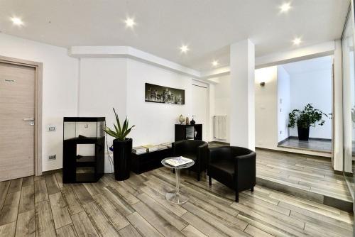 Questo ufficio è stato completamente ristrutturato nel 2018; la pavimentazione è in finto parquet, i serramenti interni sono caratterizzati dalla presenza sia di porte in legno che in vetro, i serramenti esterni sono in legno con vetro singolo, presente porta d'ingresso blindata, videocitofono e impianto di climatizzazione (3 split). Il riscaldamento è centralizzato con radiatori in ghisa con termo valvole e pompa di calore inverter.